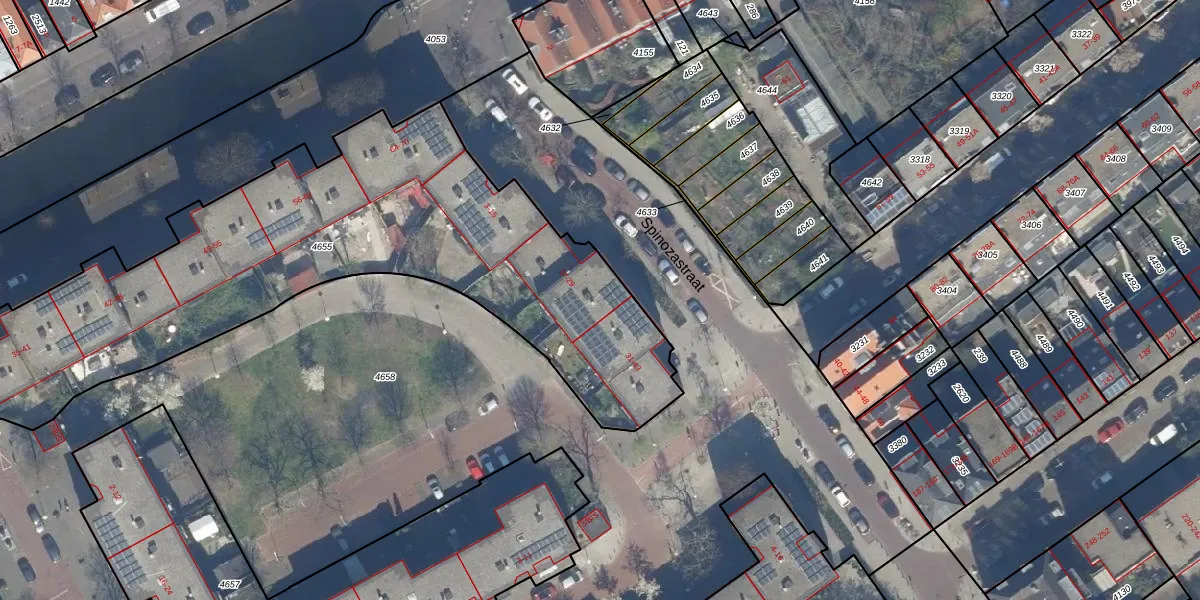 Spinozastraat 21 is gelegen op kadastraal perceel GVH21AD4655. Deze kadastrale aanduiding is uniek en wordt gebruikt door het Kadaster om eigendomsrechten en andere zakelijke rechten vast te leggen. Het perceel maakt onderdeel uit van de kadastrale gemeente 's-Gravenhage.