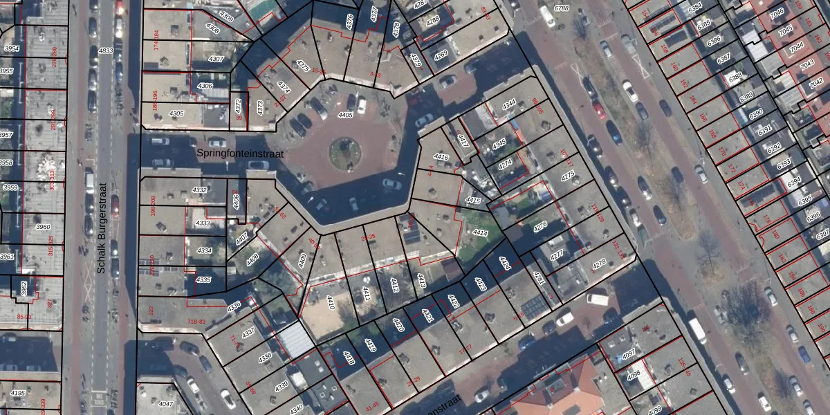 Springfonteinstraat 16 is gelegen op kadastraal perceel GVH19AB4414. Deze kadastrale aanduiding is uniek en wordt gebruikt door het Kadaster om eigendomsrechten en andere zakelijke rechten vast te leggen. Het perceel maakt onderdeel uit van de kadastrale gemeente 's-Gravenhage.
