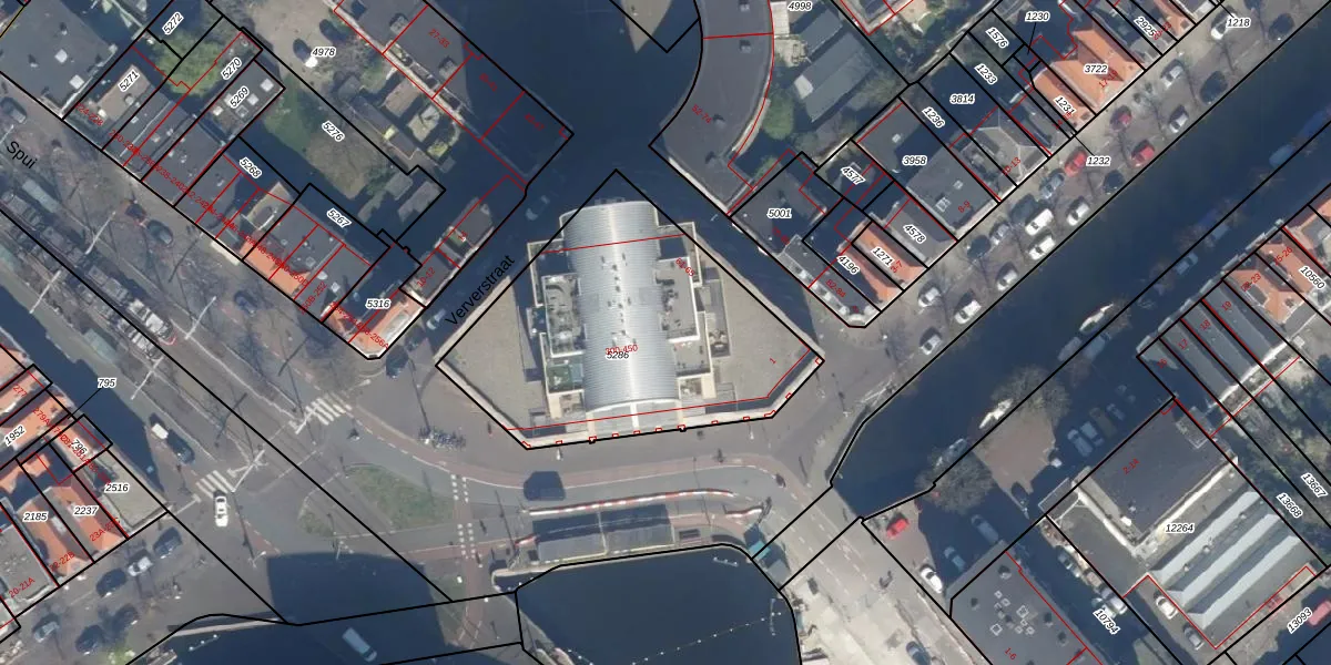 Het perceel waarop Spui 312 staat heeft een oppervlakte van 1360 m². Dit is een zeer groot perceel. De perceeloppervlakte wordt geregistreerd door het Kadaster. Gedetailleerde informatie over de maten van dit perceel kunt u vinden in het rapport Kadastrale kaart met maatvoering van Spui 312.