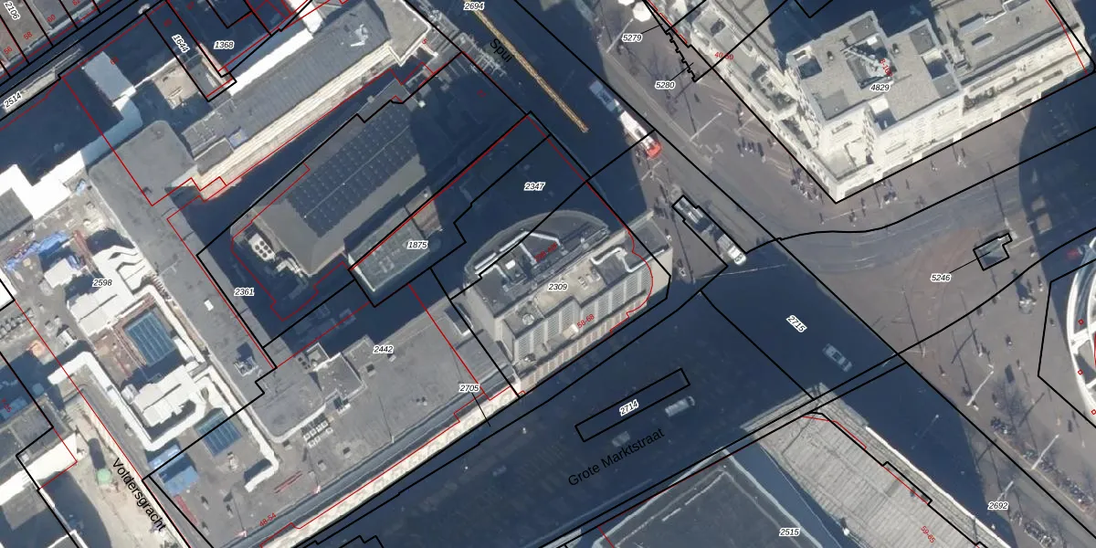Het perceel waarop Spui 35-K staat heeft een oppervlakte van 818 m². Dit is een groot perceel. De perceeloppervlakte wordt geregistreerd door het Kadaster. Gedetailleerde informatie over de maten van dit perceel kunt u vinden in het rapport Kadastrale kaart met maatvoering van Spui 35-K.