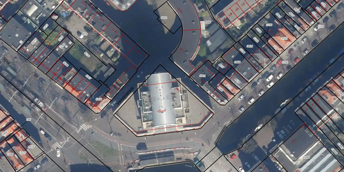 Het perceel waarop Spui 378 staat heeft een oppervlakte van 1360 m². Dit is een zeer groot perceel. De perceeloppervlakte wordt geregistreerd door het Kadaster. Gedetailleerde informatie over de maten van dit perceel kunt u vinden in het rapport Kadastrale kaart met maatvoering van Spui 378.