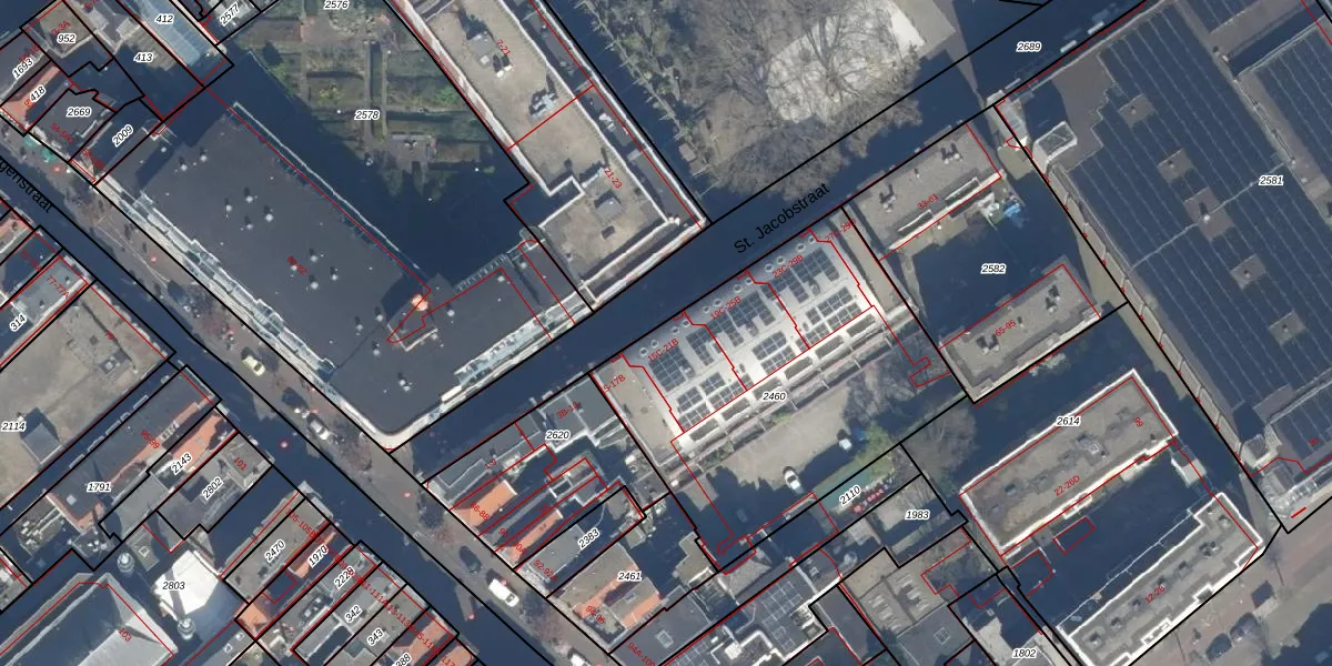 St. Jacobstraat 21-B is gelegen op kadastraal perceel GVH05H2460. Deze kadastrale aanduiding is uniek en wordt gebruikt door het Kadaster om eigendomsrechten en andere zakelijke rechten vast te leggen. Het perceel maakt onderdeel uit van de kadastrale gemeente 's-Gravenhage.