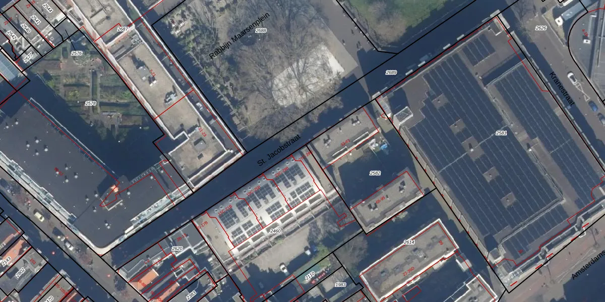 Het perceel waarop St. Jacobstraat 29-C staat heeft een oppervlakte van 1611 m². Dit is een zeer groot perceel. De perceeloppervlakte wordt geregistreerd door het Kadaster. Gedetailleerde informatie over de maten van dit perceel kunt u vinden in het rapport Kadastrale kaart met maatvoering van St. Jacobstraat 29-C.