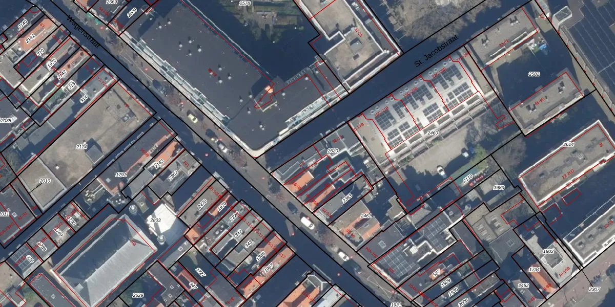 Het perceel waarop St. Jacobstraat 9 staat heeft een oppervlakte van 511 m². Dit is een groot perceel. De perceeloppervlakte wordt geregistreerd door het Kadaster. Gedetailleerde informatie over de maten van dit perceel kunt u vinden in het rapport Kadastrale kaart met maatvoering van St. Jacobstraat 9.