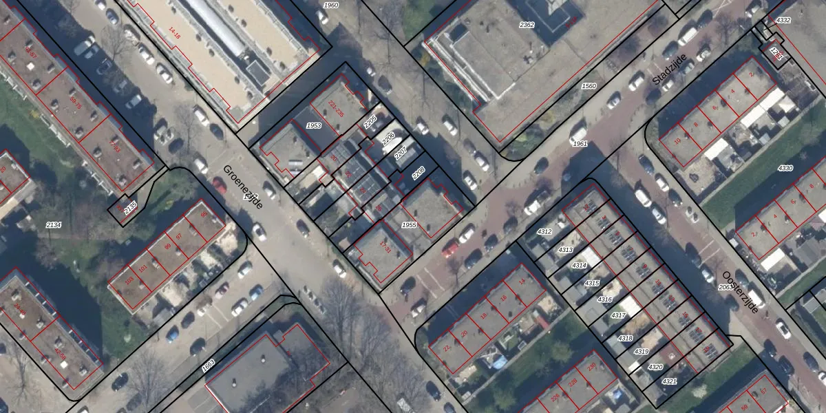 Het perceel waarop Stadzijde 19 staat heeft een oppervlakte van 403 m². Dit is een groot perceel. De perceeloppervlakte wordt geregistreerd door het Kadaster. Gedetailleerde informatie over de maten van dit perceel kunt u vinden in het rapport Kadastrale kaart met maatvoering van Stadzijde 19.