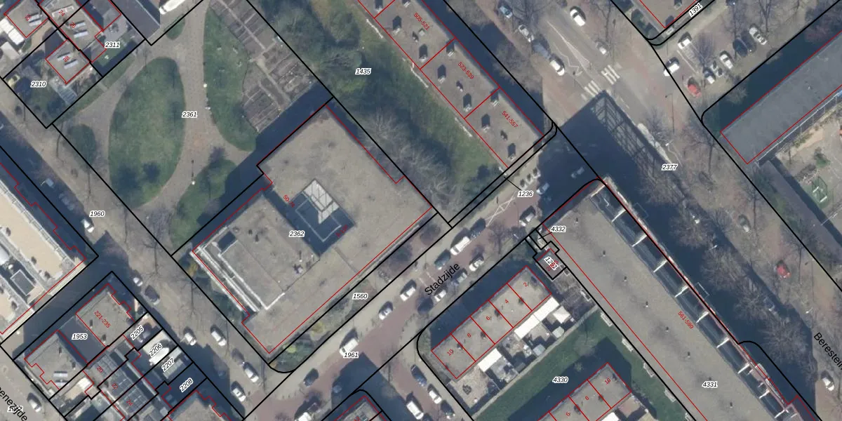 Het perceel waarop Stadzijde 5 staat heeft een oppervlakte van 1932 m². Dit is een zeer groot perceel. De perceeloppervlakte wordt geregistreerd door het Kadaster. Gedetailleerde informatie over de maten van dit perceel kunt u vinden in het rapport Kadastrale kaart met maatvoering van Stadzijde 5.