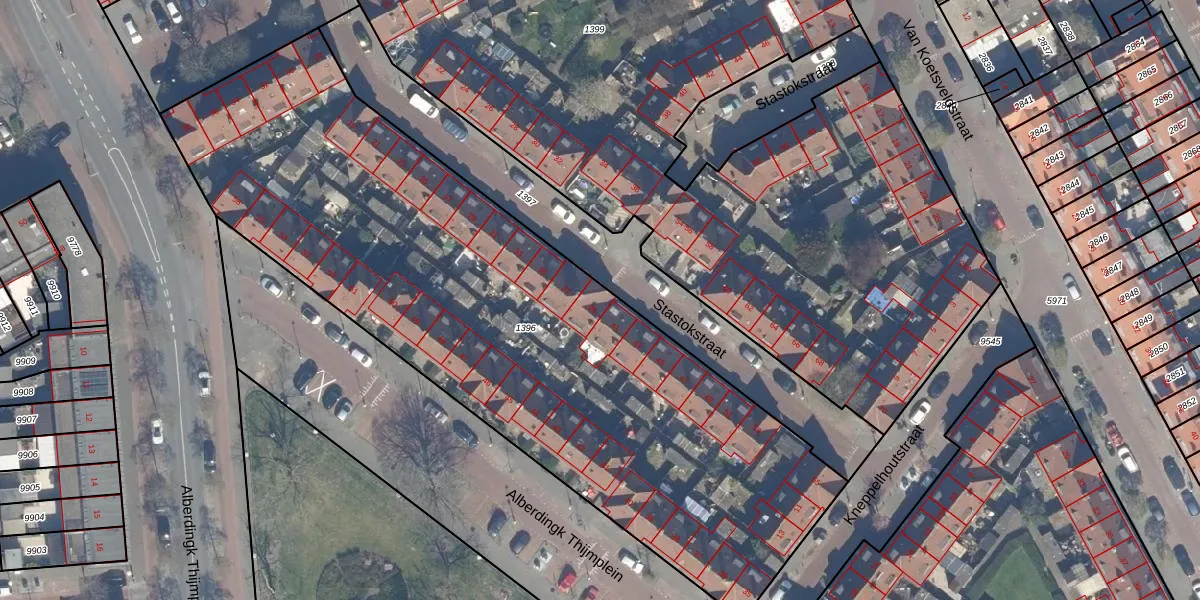 Het perceel waarop Stastokstraat 39 staat heeft een oppervlakte van 3675 m². Dit is een zeer groot perceel. De perceeloppervlakte wordt geregistreerd door het Kadaster. Gedetailleerde informatie over de maten van dit perceel kunt u vinden in het rapport Kadastrale kaart met maatvoering van Stastokstraat 39.