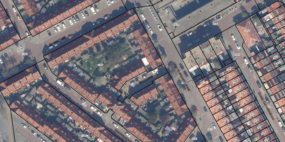 Stastokstraat 46 is gelegen op kadastraal perceel GVH26AI1399. Deze kadastrale aanduiding is uniek en wordt gebruikt door het Kadaster om eigendomsrechten en andere zakelijke rechten vast te leggen. Het perceel maakt onderdeel uit van de kadastrale gemeente 's-Gravenhage.