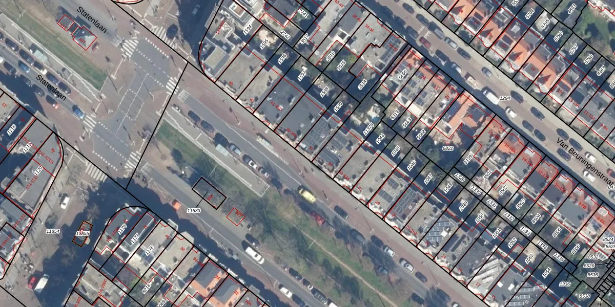 Het perceel waarop Statenlaan 37 staat heeft een oppervlakte van 175 m². Dit is een middelgroot perceel. De perceeloppervlakte wordt geregistreerd door het Kadaster. Gedetailleerde informatie over de maten van dit perceel kunt u vinden in het rapport Kadastrale kaart met maatvoering van Statenlaan 37.