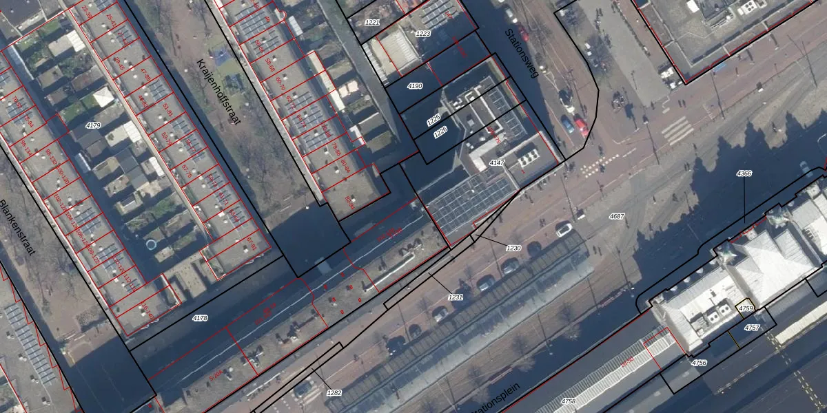 Stationsplein 12-B is gelegen op kadastraal perceel GVH21AD4178. Deze kadastrale aanduiding is uniek en wordt gebruikt door het Kadaster om eigendomsrechten en andere zakelijke rechten vast te leggen. Het perceel maakt onderdeel uit van de kadastrale gemeente 's-Gravenhage.