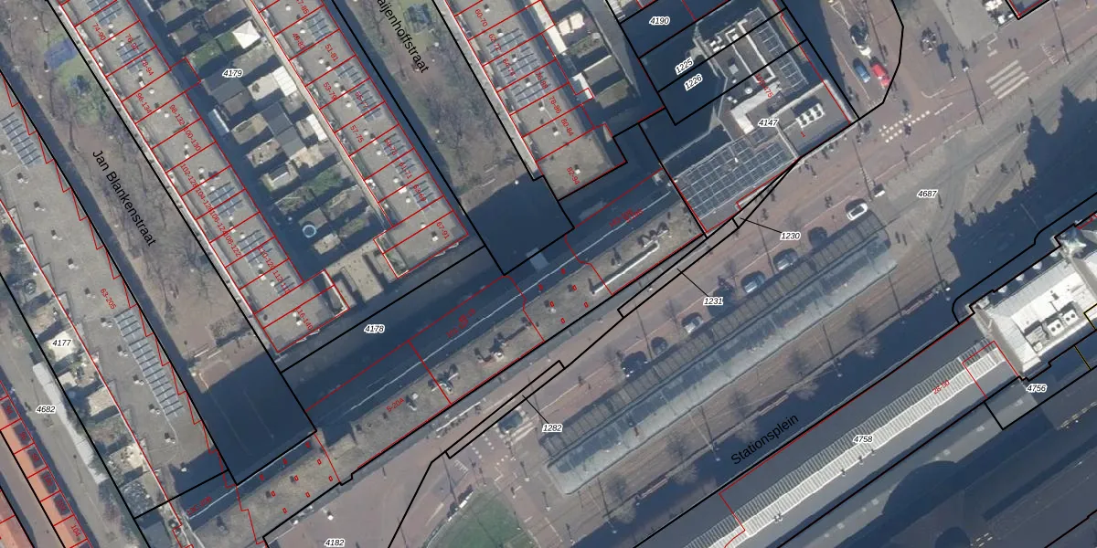 Het perceel waarop Stationsplein 19 staat heeft een oppervlakte van 2577 m². Dit is een zeer groot perceel. De perceeloppervlakte wordt geregistreerd door het Kadaster. Gedetailleerde informatie over de maten van dit perceel kunt u vinden in het rapport Kadastrale kaart met maatvoering van Stationsplein 19.