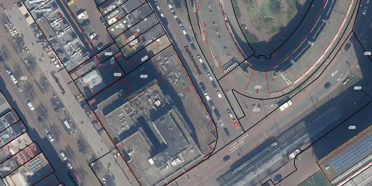 Het perceel waarop Stationsplein 252 staat heeft een oppervlakte van 3247 m². Dit is een zeer groot perceel. De perceeloppervlakte wordt geregistreerd door het Kadaster. Gedetailleerde informatie over de maten van dit perceel kunt u vinden in het rapport Kadastrale kaart met maatvoering van Stationsplein 252.