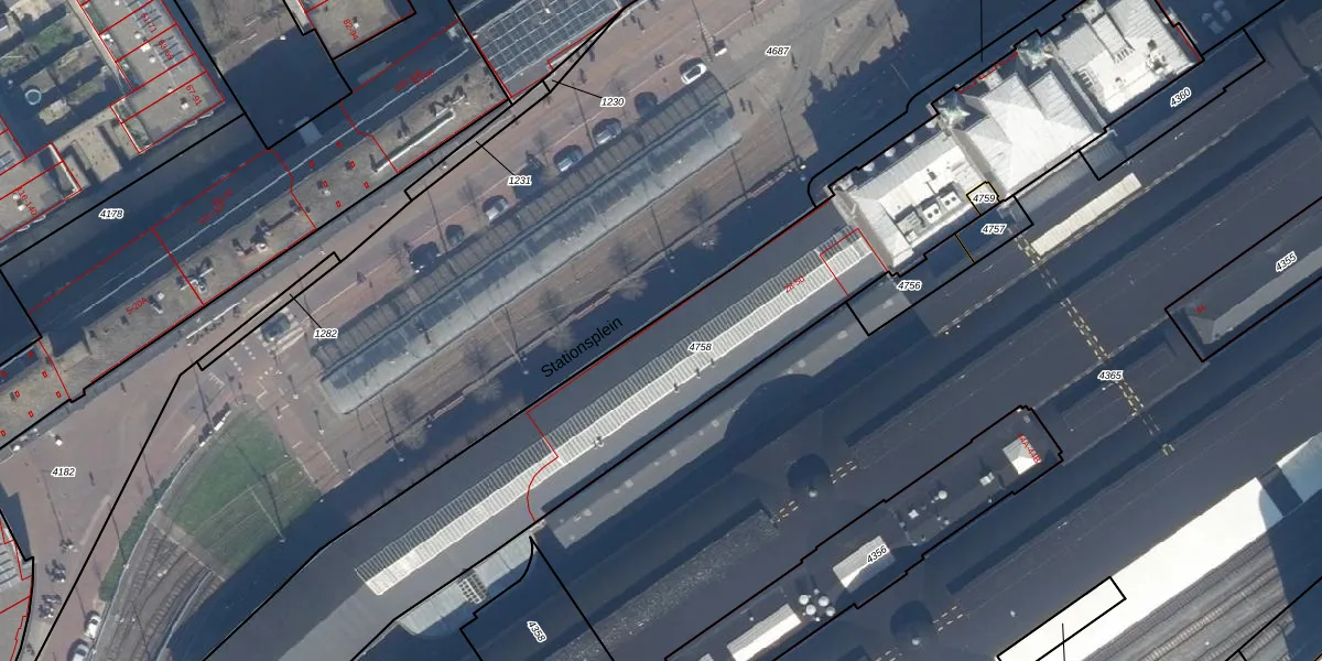 Het perceel waarop Stationsplein 33 staat heeft een oppervlakte van 2802 m². Dit is een zeer groot perceel. De perceeloppervlakte wordt geregistreerd door het Kadaster. Gedetailleerde informatie over de maten van dit perceel kunt u vinden in het rapport Kadastrale kaart met maatvoering van Stationsplein 33.