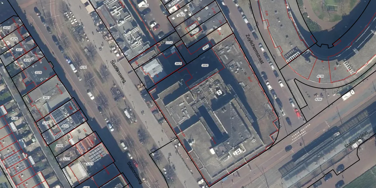 Het perceel waarop Stationsplein 433 staat heeft een oppervlakte van 3247 m². Dit is een zeer groot perceel. De perceeloppervlakte wordt geregistreerd door het Kadaster. Gedetailleerde informatie over de maten van dit perceel kunt u vinden in het rapport Kadastrale kaart met maatvoering van Stationsplein 433.