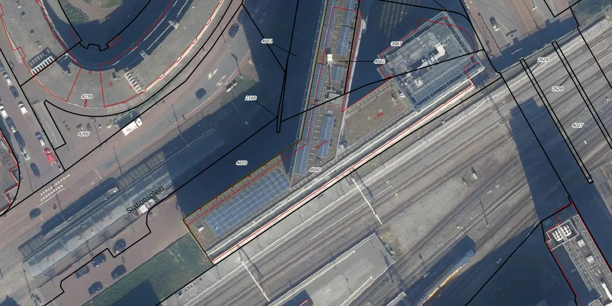 Het perceel waarop Stationsplein 54-Z staat heeft een oppervlakte van 2068 m². Dit is een zeer groot perceel. De perceeloppervlakte wordt geregistreerd door het Kadaster. Gedetailleerde informatie over de maten van dit perceel kunt u vinden in het rapport Kadastrale kaart met maatvoering van Stationsplein 54-Z.