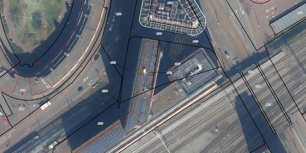 Stationsplein 63-H is gelegen op kadastraal perceel GVH21AD4662. Deze kadastrale aanduiding is uniek en wordt gebruikt door het Kadaster om eigendomsrechten en andere zakelijke rechten vast te leggen. Het perceel maakt onderdeel uit van de kadastrale gemeente 's-Gravenhage.