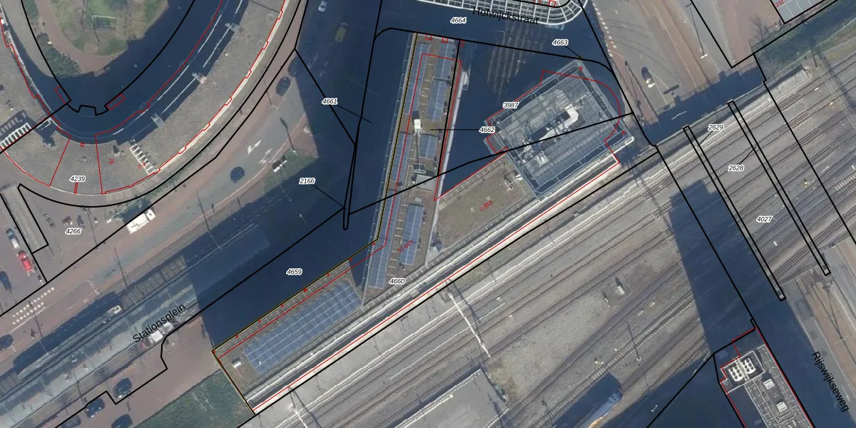 Het perceel waarop Stationsplein 64-Q staat heeft een oppervlakte van 2068 m². Dit is een zeer groot perceel. De perceeloppervlakte wordt geregistreerd door het Kadaster. Gedetailleerde informatie over de maten van dit perceel kunt u vinden in het rapport Kadastrale kaart met maatvoering van Stationsplein 64-Q.