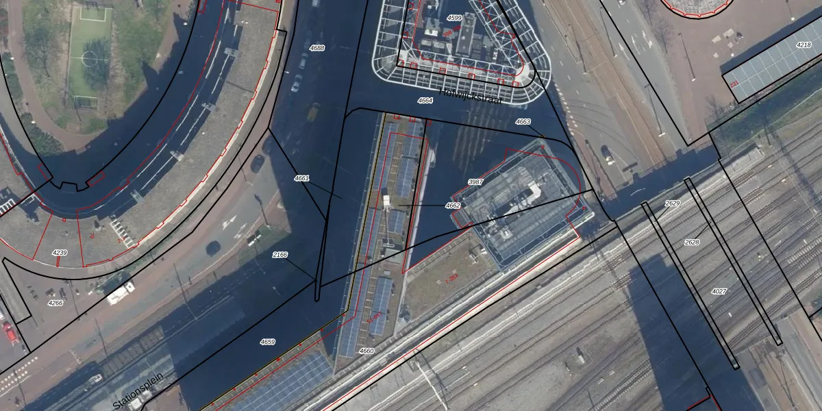 Het perceel waarop Stationsplein 65-G staat heeft een oppervlakte van 387 m². Dit is een groot perceel. De perceeloppervlakte wordt geregistreerd door het Kadaster. Gedetailleerde informatie over de maten van dit perceel kunt u vinden in het rapport Kadastrale kaart met maatvoering van Stationsplein 65-G.