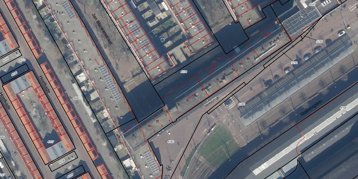 Het perceel waarop Stationsplein 7 staat heeft een oppervlakte van 2577 m². Dit is een zeer groot perceel. De perceeloppervlakte wordt geregistreerd door het Kadaster. Gedetailleerde informatie over de maten van dit perceel kunt u vinden in het rapport Kadastrale kaart met maatvoering van Stationsplein 7.