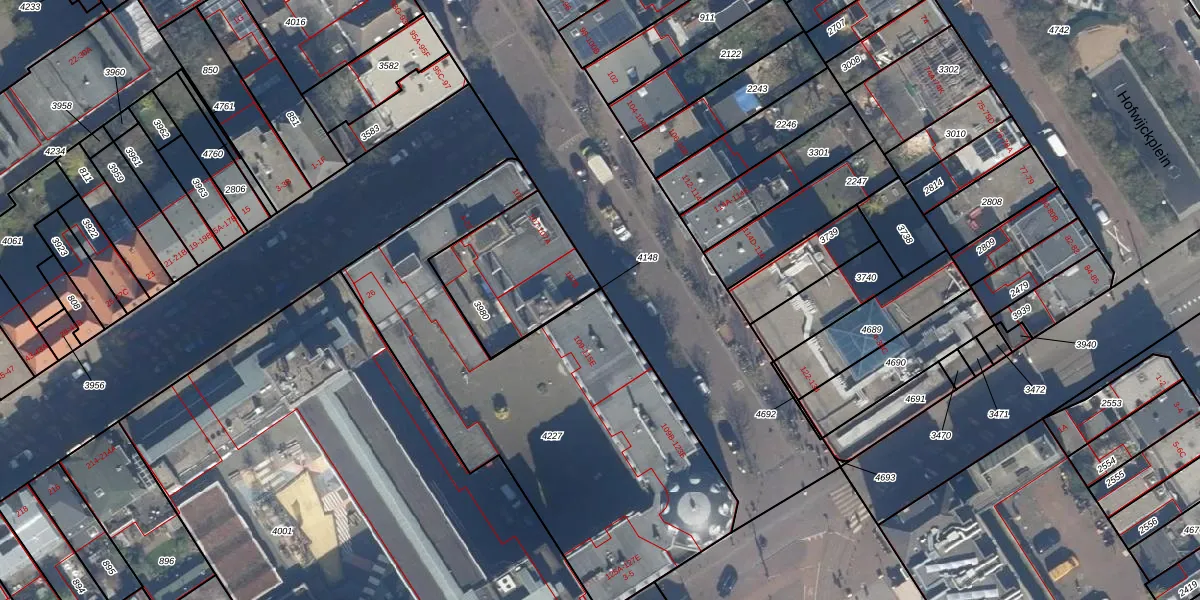 Het adres ligt op het perceel GVH21-AD-4227, dat zich in de kadastrale gemeente 's-Gravenhage bevindt. De oppervlakte van het perceel is 1942 m². Dat is groter dan gemiddeld in 's-Gravenhage, waar de gemiddelde perceeloppervlakte op 908,69 m² ligt. Het kleinste perceel in de kadastrale gemeente is 0 m² groot. De grootste perceeloppervlakte is 9,1 ha. Op het perceel zijn 71 adressen aanwezig. De huidige grenzen van het perceel zijn digitaal in de Basisregistratie Kadaster (BRK) geregistreerd op 11-12-2003.