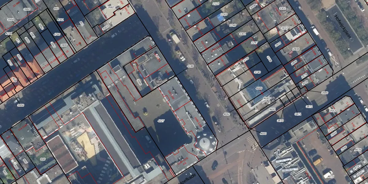 Het perceel waarop het adres ligt is GVH21-AD-4227. De afkorting 'GVH21' staat voor kadastrale gemeente 's-Gravenhage. Het perceel is met 1942 m² relatief groot. Het gemiddelde ligt in de kadastrale gemeente 's-Gravenhage op 908,69 m². Het kleinste perceel in de kadastrale gemeente is 0 m² groot. De grootste perceeloppervlakte is 9,1 ha. Er zijn 71 adressen aanwezig op het perceel. De huidige grenzen van het perceel zijn digitaal in de Basisregistratie Kadaster (BRK) geregistreerd op 11-12-2003.