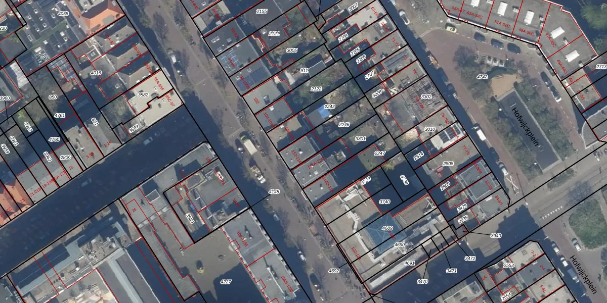 Het adres ligt op het perceel GVH21-AD-2246, dat zich in de kadastrale gemeente 's-Gravenhage bevindt. De gemiddelde perceelgrootte in 's-Gravenhage is 908,69 m². Dit perceel is kleiner: de perceeloppervlakte bedraagt 249 m². Het grootste perceel in de kadastrale gemeente is 9,1 ha. Het kleinste perceel heeft een oppervlakte van 0 m². Op het perceel liggen in totaal 7 adressen. In de Basisregistratie Kadaster (BRK) werden de grenzen van het perceel geregistreerd op 08-12-2003.
