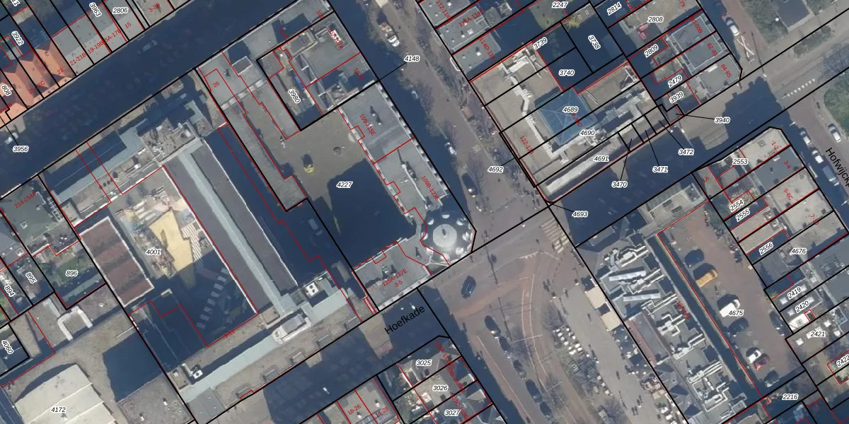 Het adres ligt op het perceel GVH21-AD-4227, dat zich in de kadastrale gemeente 's-Gravenhage bevindt. Het perceel is met 1942 m² relatief groot. Het gemiddelde ligt in de kadastrale gemeente 's-Gravenhage op 908,69 m². Het grootste perceel in de kadastrale gemeente is 9,1 ha. Het kleinste perceel heeft een oppervlakte van 0 m². Er zijn 71 adressen aanwezig op het perceel. In de Basisregistratie Kadaster (BRK) werden de grenzen van het perceel geregistreerd op 11-12-2003.