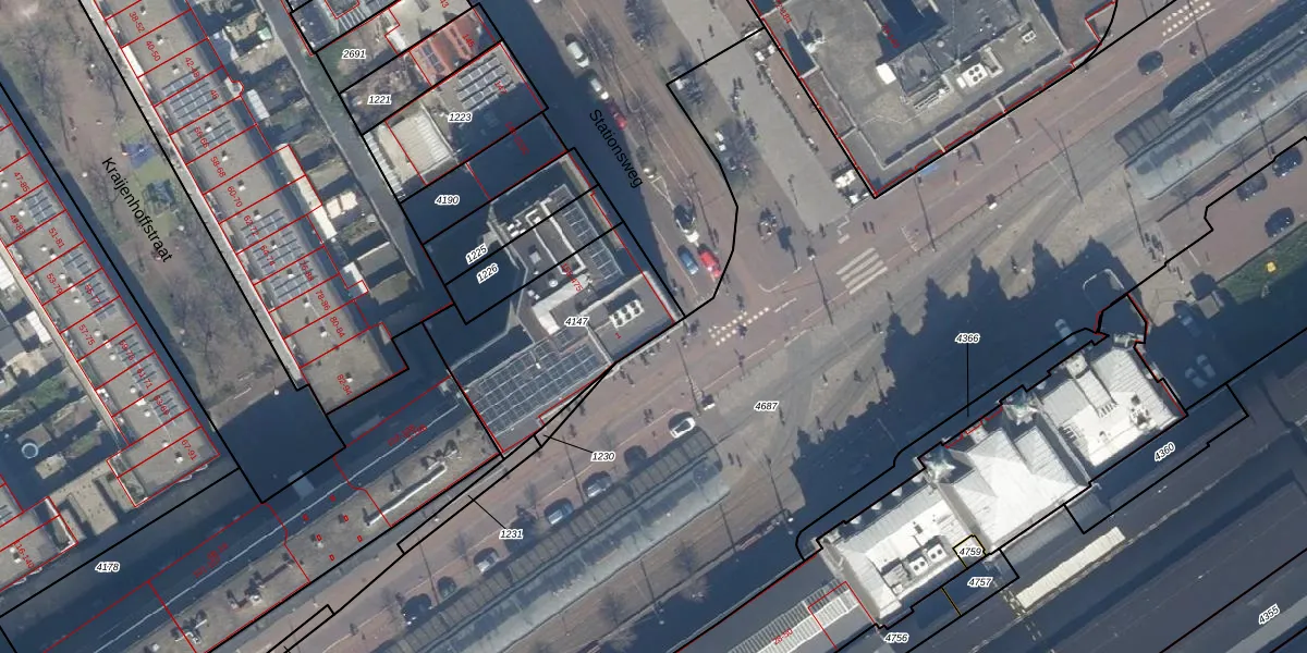 Stationsweg 227 is gelegen op kadastraal perceel GVH21AD4147. Deze kadastrale aanduiding is uniek en wordt gebruikt door het Kadaster om eigendomsrechten en andere zakelijke rechten vast te leggen. Het perceel maakt onderdeel uit van de kadastrale gemeente 's-Gravenhage.
