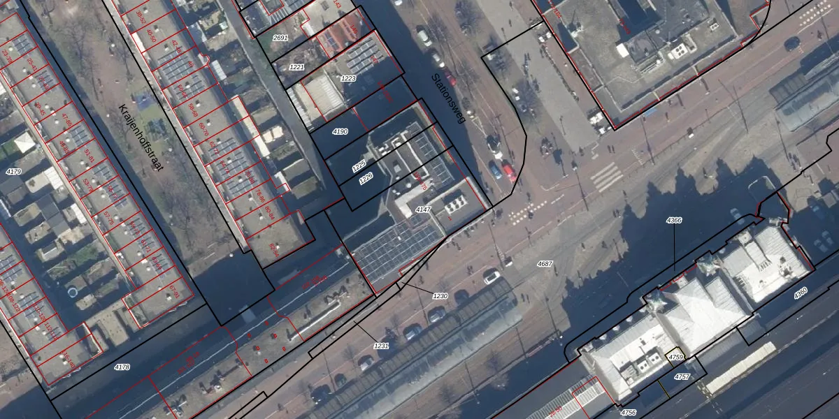 Stationsweg 273 is gelegen op kadastraal perceel GVH21AD4147. Deze kadastrale aanduiding is uniek en wordt gebruikt door het Kadaster om eigendomsrechten en andere zakelijke rechten vast te leggen. Het perceel maakt onderdeel uit van de kadastrale gemeente 's-Gravenhage.