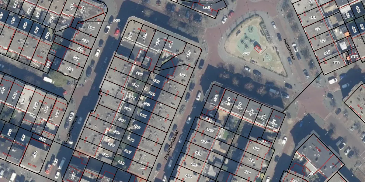 Staverdenstraat 103 is gelegen op kadastraal perceel GVH28AL3341. Deze kadastrale aanduiding is uniek en wordt gebruikt door het Kadaster om eigendomsrechten en andere zakelijke rechten vast te leggen. Het perceel maakt onderdeel uit van de kadastrale gemeente 's-Gravenhage.
