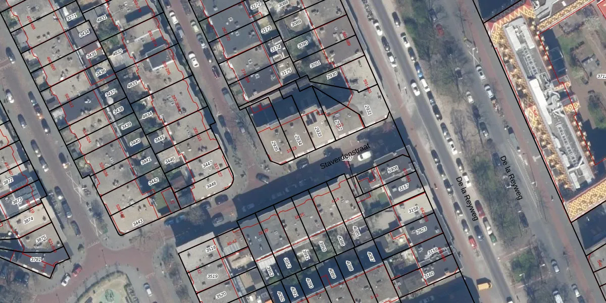 Staverdenstraat 13 is gelegen op kadastraal perceel GVH28AL2934. Deze kadastrale aanduiding is uniek en wordt gebruikt door het Kadaster om eigendomsrechten en andere zakelijke rechten vast te leggen. Het perceel maakt onderdeel uit van de kadastrale gemeente 's-Gravenhage.