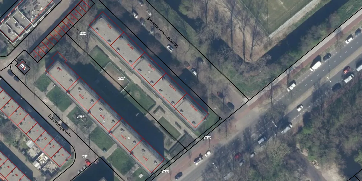 Het perceel waarop het adres ligt is GVH37-AW-4607. De afkorting 'GVH37' staat voor kadastrale gemeente 's-Gravenhage. De gemiddelde perceeloppervlakte in de kadastrale gemeente 's-Gravenhage is 1320,78 m². Dit perceel is met zijn 2415 m² dus groter dan gemiddeld. Het grootste perceel in de kadastrale gemeente is 12,9 ha. Het kleinste perceel heeft een oppervlakte van 0 m². Op het perceel zijn 40 adressen aanwezig. In de Basisregistratie Kadaster (BRK) werden de grenzen van het perceel geregistreerd op 07-08-2017.