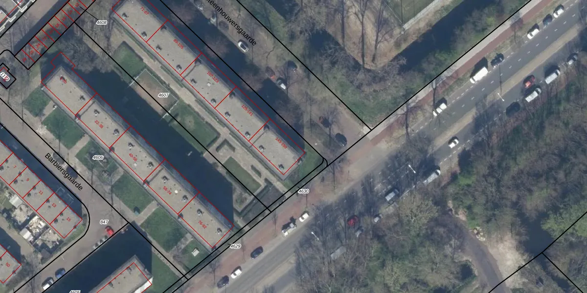 Het perceel waarop het adres ligt is GVH37-AW-4607. De afkorting 'GVH37' staat voor kadastrale gemeente 's-Gravenhage. De oppervlakte van het perceel is 2415 m². Dat is groter dan gemiddeld in 's-Gravenhage, waar de gemiddelde perceeloppervlakte op 1320,78 m² ligt. Het grootste perceel in de kadastrale gemeente is 12,9 ha. Het kleinste perceel heeft een oppervlakte van 0 m². Er zijn 40 adressen aanwezig op het perceel. De laatste wijziging in het de Basisregistratie Kadaster (BRK) was op 07-08-2017.