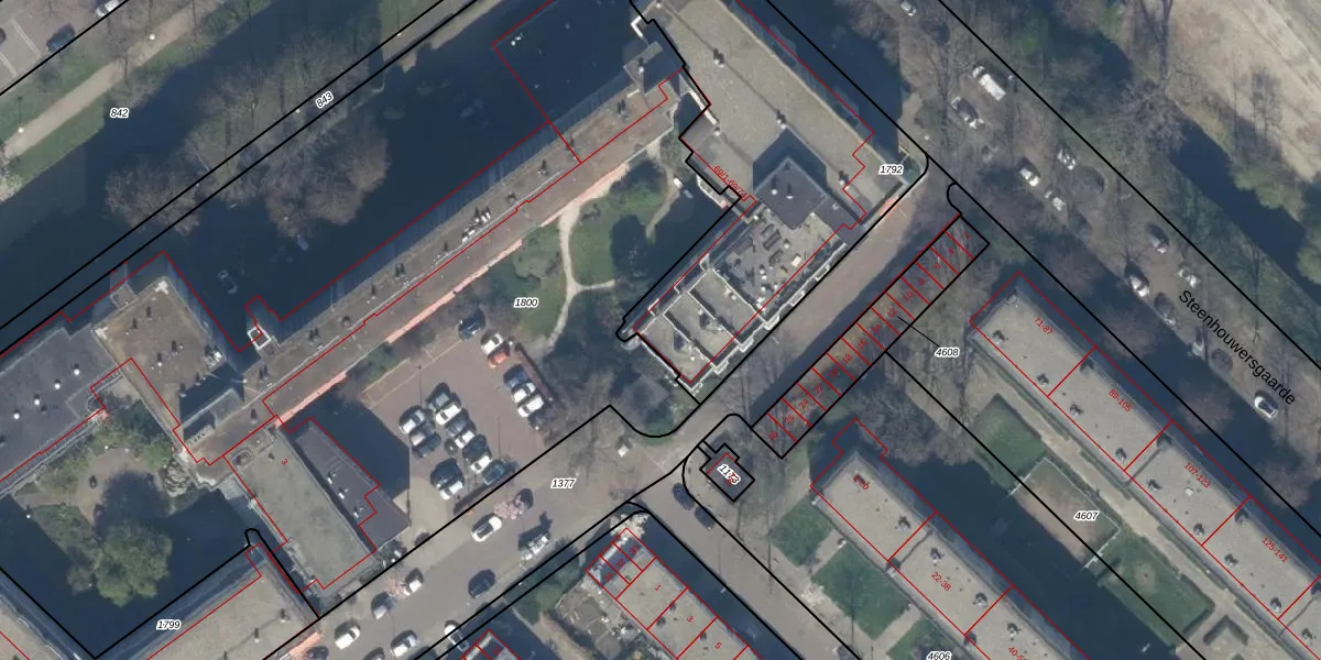 Het perceel waarop Steenhouwersgaarde 69-18 staat heeft een oppervlakte van 1505 m². Dit is een zeer groot perceel. De perceeloppervlakte wordt geregistreerd door het Kadaster. Gedetailleerde informatie over de maten van dit perceel kunt u vinden in het rapport Kadastrale kaart met maatvoering van Steenhouwersgaarde 69-18.