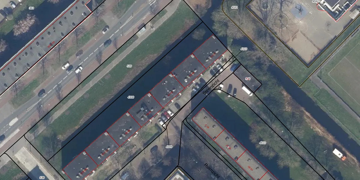 Het perceel waarop Steenzicht 53 staat heeft een oppervlakte van 3371 m². Dit is een zeer groot perceel. De perceeloppervlakte wordt geregistreerd door het Kadaster. Gedetailleerde informatie over de maten van dit perceel kunt u vinden in het rapport Kadastrale kaart met maatvoering van Steenzicht 53.
