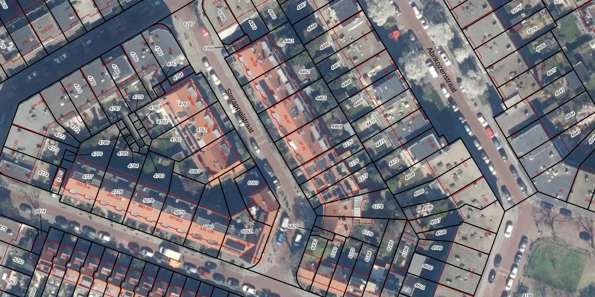 Sterappelstraat 39 is gelegen op kadastraal perceel LDN03I4464. Deze kadastrale aanduiding is uniek en wordt gebruikt door het Kadaster om eigendomsrechten en andere zakelijke rechten vast te leggen. Het perceel maakt onderdeel uit van de kadastrale gemeente Loosduinen.