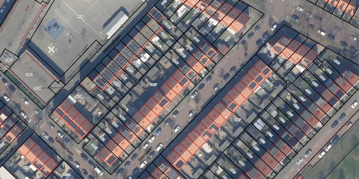 Het perceel waarop Sternlaan 14 staat heeft een oppervlakte van 941 m². Dit is een groot perceel. De perceeloppervlakte wordt geregistreerd door het Kadaster. Gedetailleerde informatie over de maten van dit perceel kunt u vinden in het rapport Kadastrale kaart met maatvoering van Sternlaan 14.