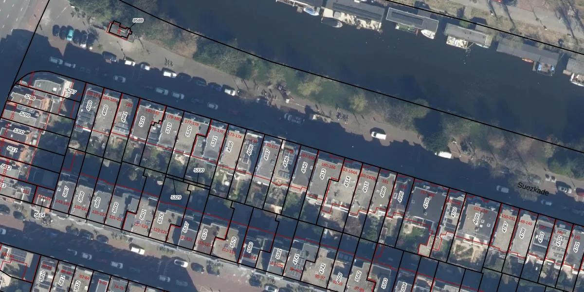 Het perceel waarop Suezkade 169 staat heeft een oppervlakte van 164 m². Dit is een middelgroot perceel. De perceeloppervlakte wordt geregistreerd door het Kadaster. Gedetailleerde informatie over de maten van dit perceel kunt u vinden in het rapport Kadastrale kaart met maatvoering van Suezkade 169.