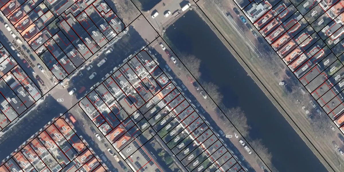 Het adres is gelegen op perceel 4155 in de sectie W en de kadastrale gemeente 's-Gravenhage. De kadastrale aanduiding is aldus GVH15-W-4155. Het perceel is kleiner dan gemiddeld in 's-Gravenhage. Het perceel is 108 m² groot, terwijl het gemiddelde ligt op 230,29 m². Het kleinste perceel in de kadastrale gemeente is 1 m² groot. De grootste perceeloppervlakte is 1,5 ha. Er zijn geen andere adressen aanwezig op het perceel. In de Basisregistratie Kadaster (BRK) werden de grenzen van het perceel geregistreerd op 31-10-2003.