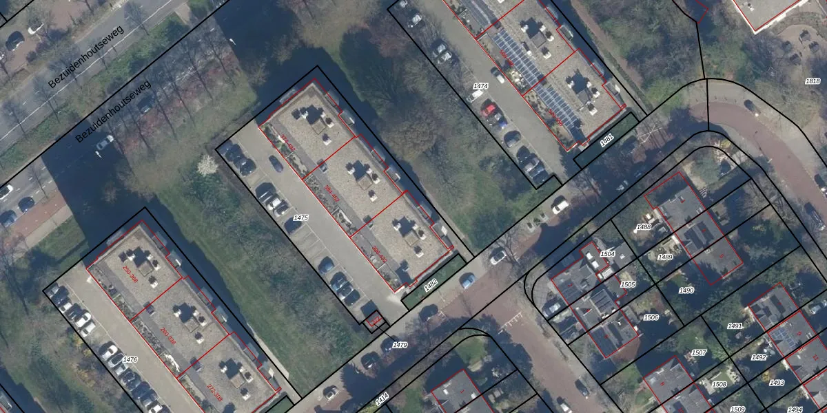 Het perceel waarop het adres ligt is GVH34-AS-1475. De afkorting 'GVH34' staat voor kadastrale gemeente 's-Gravenhage. De oppervlakte van het perceel is 1838 m². Dat is groter dan gemiddeld in 's-Gravenhage, waar de gemiddelde perceeloppervlakte op 1318,64 m² ligt. De grootste perceeloppervlakte in de kadastrale gemeente is 11,0 ha. De kleinste oppervlakte bedraagt 0 m². Op het perceel liggen in totaal 57 adressen. De laatste wijziging in het de Basisregistratie Kadaster (BRK) was op 14-11-2005.