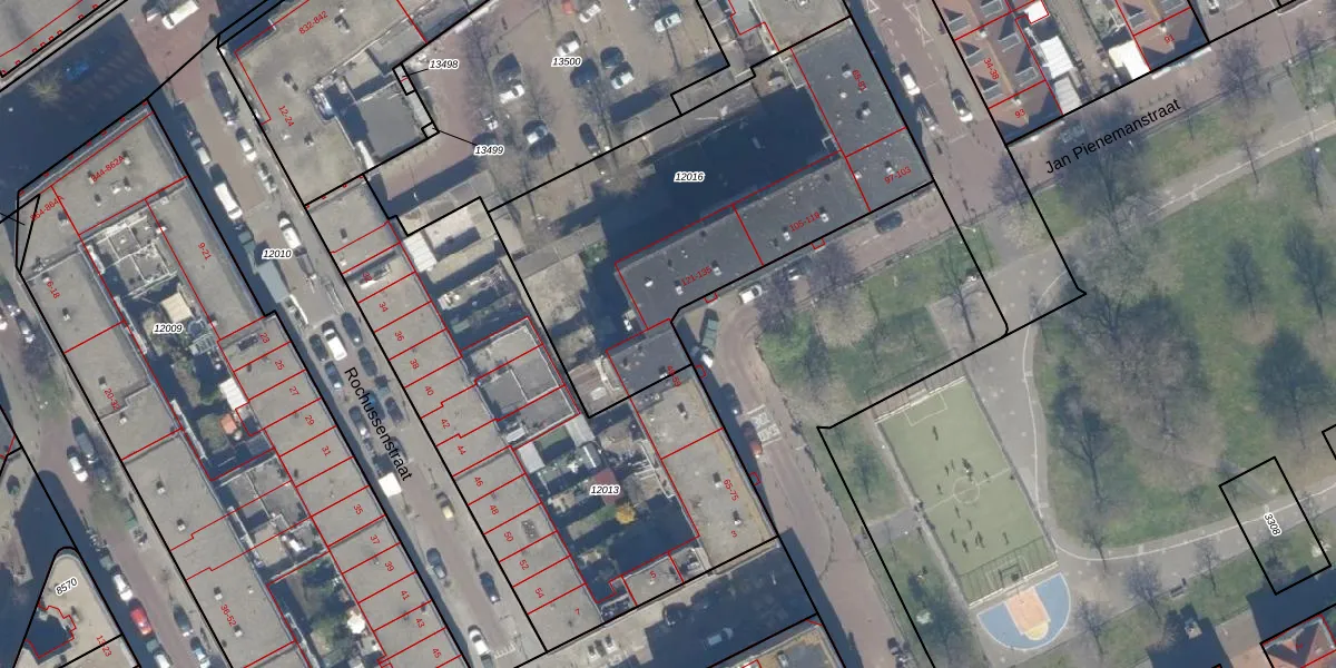 Het perceel waarop het adres ligt is GVH08-L-12016. De afkorting 'GVH08' staat voor kadastrale gemeente 's-Gravenhage. De gemiddelde perceeloppervlakte in de kadastrale gemeente 's-Gravenhage is 468,2 m². Dit perceel is met zijn 1755 m² dus groter dan gemiddeld. Het kleinste perceel in de kadastrale gemeente is 0 m² groot. De grootste perceeloppervlakte is 3,8 ha. Er zijn 31 adressen aanwezig op het perceel. In de Basisregistratie Kadaster (BRK) werden de grenzen van het perceel geregistreerd op 19-09-2003.