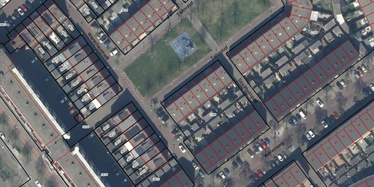 Het perceel waarop Tallinnhof 13 staat heeft een oppervlakte van 1832 m². Dit is een zeer groot perceel. De perceeloppervlakte wordt geregistreerd door het Kadaster. Gedetailleerde informatie over de maten van dit perceel kunt u vinden in het rapport Kadastrale kaart met maatvoering van Tallinnhof 13.