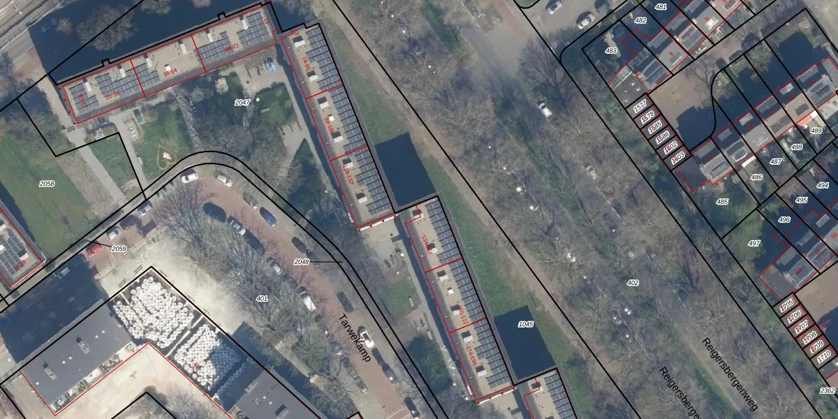 Het perceel waarop Tarwekamp 134 staat heeft een oppervlakte van 6429 m². Dit is een zeer groot perceel. De perceeloppervlakte wordt geregistreerd door het Kadaster. Gedetailleerde informatie over de maten van dit perceel kunt u vinden in het rapport Kadastrale kaart met maatvoering van Tarwekamp 134.