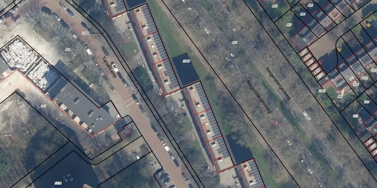Het perceel waarop Tarwekamp 202 staat heeft een oppervlakte van 6429 m². Dit is een zeer groot perceel. De perceeloppervlakte wordt geregistreerd door het Kadaster. Gedetailleerde informatie over de maten van dit perceel kunt u vinden in het rapport Kadastrale kaart met maatvoering van Tarwekamp 202.