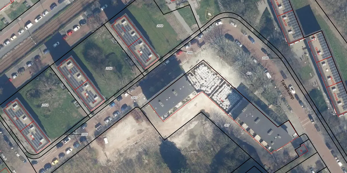 Het perceel waarop Tarwekamp 31 staat heeft een oppervlakte van 2457 m². Dit is een zeer groot perceel. De perceeloppervlakte wordt geregistreerd door het Kadaster. Gedetailleerde informatie over de maten van dit perceel kunt u vinden in het rapport Kadastrale kaart met maatvoering van Tarwekamp 31.