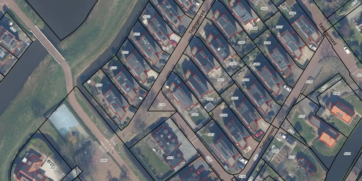 Het perceel waarop Tedingeroord 37 staat heeft een oppervlakte van 417 m². Dit is een groot perceel. De perceeloppervlakte wordt geregistreerd door het Kadaster. Gedetailleerde informatie over de maten van dit perceel kunt u vinden in het rapport Kadastrale kaart met maatvoering van Tedingeroord 37.
