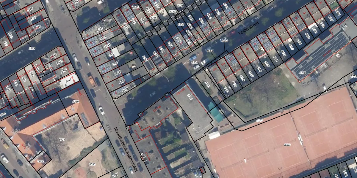 Het perceel waarop Teijlerstraat 128 staat heeft een oppervlakte van 495 m². Dit is een groot perceel. De perceeloppervlakte wordt geregistreerd door het Kadaster. Gedetailleerde informatie over de maten van dit perceel kunt u vinden in het rapport Kadastrale kaart met maatvoering van Teijlerstraat 128.