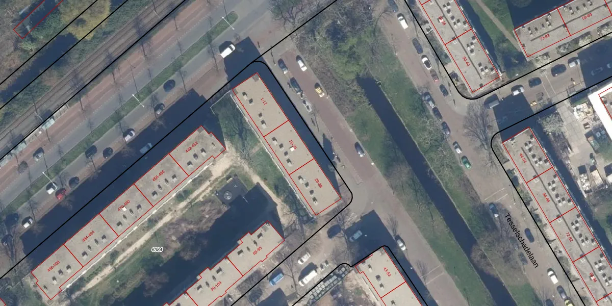 Tesselschadelaan 21 is gelegen op kadastraal perceel GVH28AL6384. Deze kadastrale aanduiding is uniek en wordt gebruikt door het Kadaster om eigendomsrechten en andere zakelijke rechten vast te leggen. Het perceel maakt onderdeel uit van de kadastrale gemeente 's-Gravenhage.