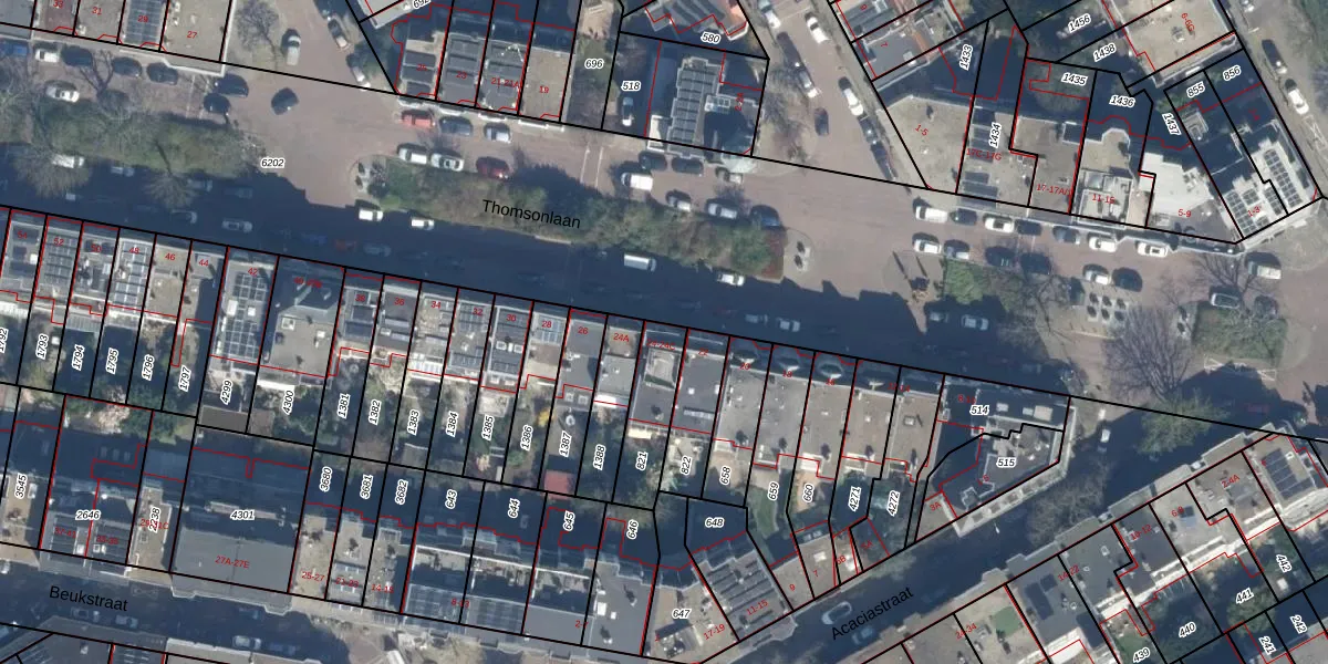 Het perceel waarop Thomsonlaan 24-C staat heeft een oppervlakte van 181 m². Dit is een middelgroot perceel. De perceeloppervlakte wordt geregistreerd door het Kadaster. Gedetailleerde informatie over de maten van dit perceel kunt u vinden in het rapport Kadastrale kaart met maatvoering van Thomsonlaan 24-C.