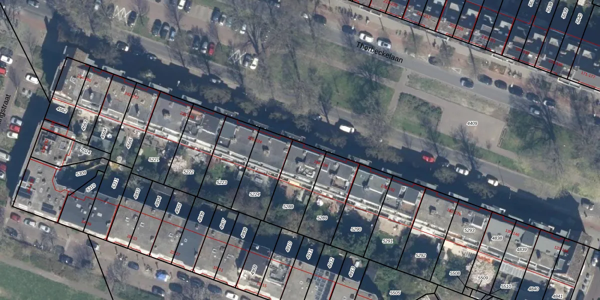Thorbeckelaan 206 is gelegen op kadastraal perceel LDN03I5288. Deze kadastrale aanduiding is uniek en wordt gebruikt door het Kadaster om eigendomsrechten en andere zakelijke rechten vast te leggen. Het perceel maakt onderdeel uit van de kadastrale gemeente Loosduinen.